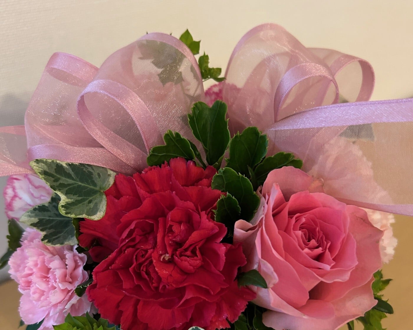 【お花の内容】 サイズ:H23 × W20 × D20 オーガンジーの大きなリボンがアクセントのアレンジです♪♪ お花はリボンに合わせてピンク系のグラデーションで可愛くおまとめします♪ 【お届け日について】※必ずお読みください※ 母の日商品のお届け日は、下記スケジュールで対応させていただきます ≪~4/30までのご注文≫ 日付指定可能です(時間指定はできません) ※ご注文の際に「備考欄」へご希望のお日にちを記入ください、指定がなければ5/6~5/10の期間で配達いたします ≪5/1~5/5までのご注文≫ 5/6~5/10の期間で配達(日付指定はできません) ≪5/6~5/8(17:00〆切)までのご注文≫ ~5/10までに配達(日付指定はできません) ≪5/8(17:00以降)~5/10のご注文≫ ~5/11までに配達(日付指定はできません) 【メッセージカードについて】 ①「既製品の母の日用カード」 お母さんありがとう、Mother's Day 等、在庫の中からこちらで選んでお付けします ②「お好きな文章を入れたメッセージカード」 ※①か②どちらかをお付けすることができますので、ご注文の際に「備考欄」へご記入ください ②をご希望のお客様はメッセージの内容を「備考欄」へ忘れずにご記入ください 【ご不在時の対応】 ・お届け先様がご不在の際には「不在票」を投函し、ご連絡をいただいてからの再度配達となりますのでご了承ください(お届け先様より2日以上ご連絡がない場合には、ご注文主様へご連絡いたします)